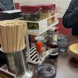 We ordered their signature menu. It's the cheapest on the menu. It turned out to be very delicious. It's a bit salty, the soup is rich, the noodles are chewy and soft. It's awesome. The shop has free plain water, plus a lot of condiments and side dishes to choose from.