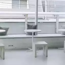 You can use the lounge space and buy food and drinks at the front desk🙆🏻♀️