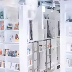 The lounge space is surrounded by bookshelves 360°, which is impressive!