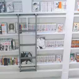 The books displayed on the bookshelves have a wide range of genres, from manga to magazines 📚