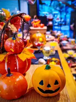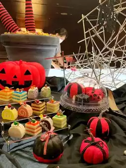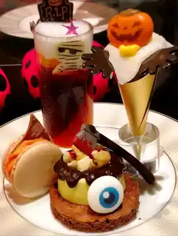 ❣️1F Lobby Lounge☠️Halloween👻Afternoon tea, the cute Halloween display attracts attention, and you can also bring small items to your own stage to take photos.
