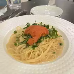 Today's dish is mentaiko pasta. You can enjoy the texture, and the rich, flavorful mentaiko is addictive with a spicy kick.