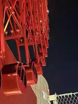 The red Ferris wheel is so pretty, and if you ride it at night, the night view is really great!