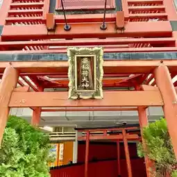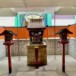 This shrine is located in a corner of Namba Parks, on the site of Osaka Baseball Stadium, which was the home field of the Nankai Hawks. It was built in 1950.
