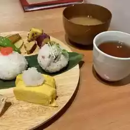 The different flavors of rice balls and the rich dashi miso soup were delicious.