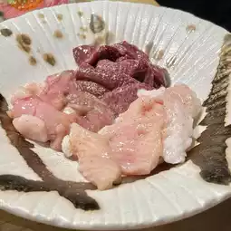 A plate with liver, tetchan, and akasen. You could choose between sauce and salt, so I chose salt. I enjoyed the texture and flavor.