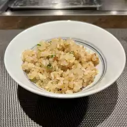 We changed the usual ochazuke to garlic rice. The rice was firm and seasoned perfectly, and it was delicious. The moderate garlic flavor made it easy to eat.