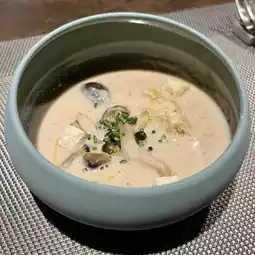 ・Lotus root potage, duck quenelle, mushroom bordelaise