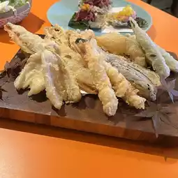 There are about 36 types of tempura, from creative tempura such as meat, seaweed, and fatty tuna, to standard tempura such as whiting, shrimp, conger eel, okra, pumpkin, and eggplant.