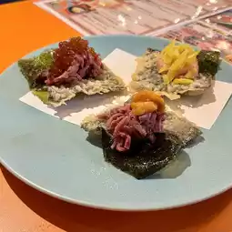 "Beef Sushi, Seafood, Kushi Tempura Bar Lelele Umeda Branch"
