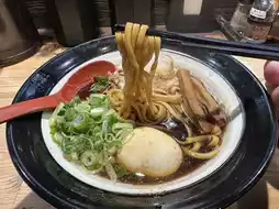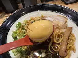 Immediately first come a mouthful of soup, the sauce is richer than expected, the saltiness is lower than imagined, the taste is mellow and thick with a little bitterness, exaggerated a little really have a sweet feeling, is a very personal taste, but I believe not people People can accept the taste, if the first visit is still recommended to start with the No. 1 golden soy sauce ramen. The noodles are excellent in hardness and elasticity, the thick noodles are indeed more matched with the rich soup, the lean part of the char siu is less wood, but the half-fat and lean part is close to melting in the mouth, the egg is also excellent, the overall score has been more than one The pile of neighbors is getting high.