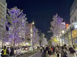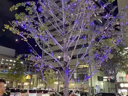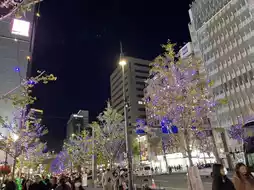 🏮 At 5 pm, the lights on the trees along the road started to turn on. The atmosphere was very romantic. There were people playing music along the way. There were long lines at every restaurant, probably because it was a Saturday-Sunday. We walked and took pictures along the road, but we definitely couldn't walk 4 kilometers. After taking pictures until we were satisfied, we went to eat at a standing ramen restaurant because we were too lazy to wait in long lines at other restaurants. This was the easiest place to eat. After eating, we took the train back as usual.