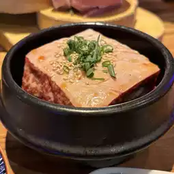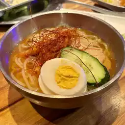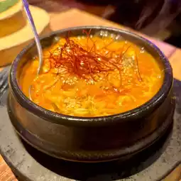 A soup with the umami of vegetables and a slight spiciness. It also contains kalbi.