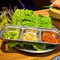 Five types of meat: premium kalbi, special loin, lean meat, yang gopchang, and samgyeopsal. Enjoy a wide range of meats, from Wagyu beef, which has a sweet and rich taste of fat with marbling, to the light and juicy samgyeopsal made with three pieces of Korean pork belly.