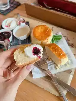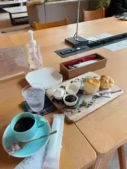 I ordered a sweet scone, and for 700 yen, you get 2 scones and 3 kinds of jam and cream, so it's really filling💐