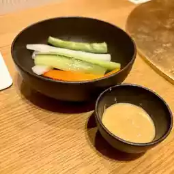 The dipping sauce comes in three varieties: meringue and egg yolk, salmon roe and grated daikon radish, and mountain yam. Add 2-3 cups of warishita to the dipping sauce before enjoying the ingredients.