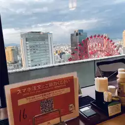There is a fried pork chop restaurant with a first-class view in "Hankyu Sanbangai" near Umeda Station 🚆 - "Tonkatsu KYK". Whether you want to see the street view of Osaka city during the day 🎡 or the night view at night 🏙️, it is a highly recommended restaurant with a view.