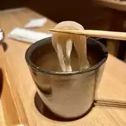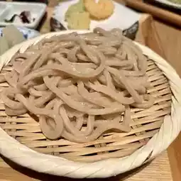 The long udon noodles are also a feature of this restaurant. The texture, which lets you know they are coarsely ground, is also an attractive feature. The soup is slightly thick, and the aroma of bonito flakes will whet your appetite.