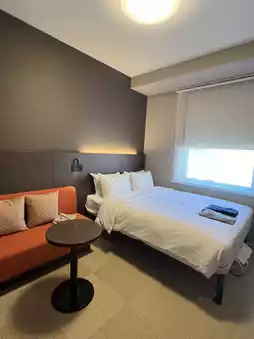 The hotel is small but has everything you need. The lobby is clean and warm. The hotel rooms have a direct view of Namba Station and Namba Parks. The washbasin, toilet and bathroom are all separate, which can improve the efficiency of space use when families move in.