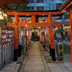 Outdoor Shrine in Sonezaki Yokocho, located among the buildings of Umeda...commonly known as OhatsuTenjin, is known as the sacred place of lovers.