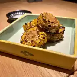Corn roasted to a fragrant sweetness. It is served with the seaweed salt on the side.