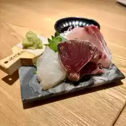 Three types: amberjack, seared bonito, and sea bream. The fresh, sweet, and flavorful wasabi from Shizuoka Prefecture is topped on the ingredients to be enjoyed.