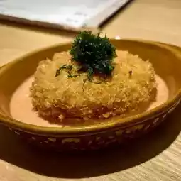 One of their specialty dishes. Radish soaked in Japanese broth is deep-fried with a light, crispy batter. It is served with plenty of chive paste sauce.
