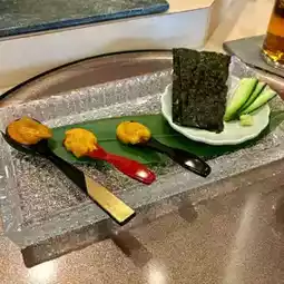 In the sea urchin tasting, you can choose your favorite from Hokkaido red sea urchin, purple sea urchin, and Russian red sea urchin, and they will serve it to you in the final gunkan.