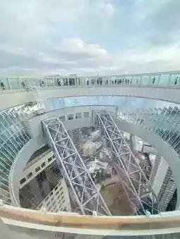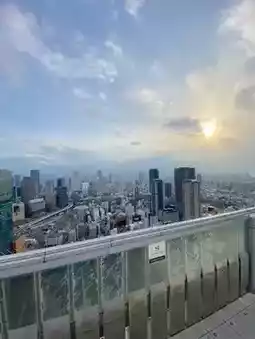 This is the Floating Garden Observatory on the 40th floor of the main building of Umeda Sky Building. You'll feel like you're walking in the sky. The view is stunning (and it's amazing they managed to build such a tall building). It's a must-visit Osaka tourist spot. I'm not good with heights, but I managed to get through it.