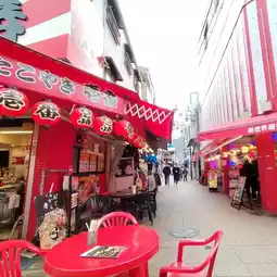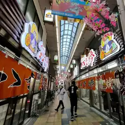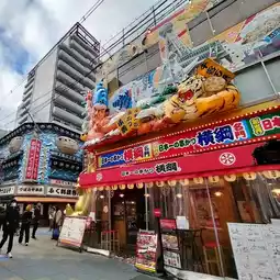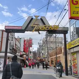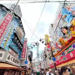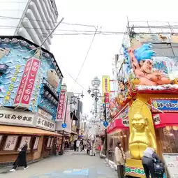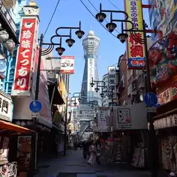 A town in the southern part of Osaka City that retains the atmosphere of the downtown area, famous for Tsutenkaku, Janjan Yokocho, and the place where the big puffer fish lantern sign was