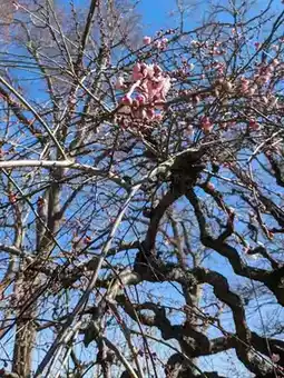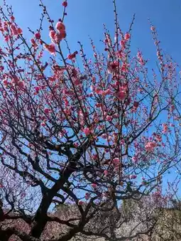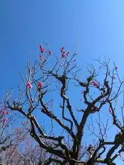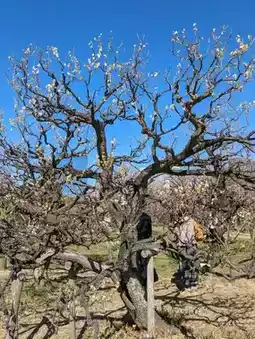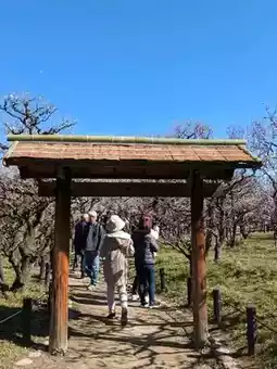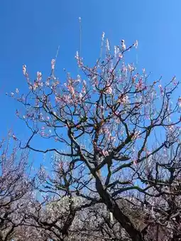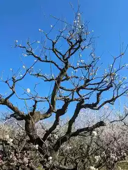 In the midst of the faint, refreshing scent of the plum blossoms, under a clear sky, the sight of the plum blossoms blooming up into the sky, and the grace of the gently sloping weeping plums, soothed my heart, and it was a very good day.