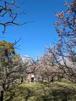 The plum grove at Osaka Castle is in full bloom, and the beautiful feast of plum blossoms is breathtaking.