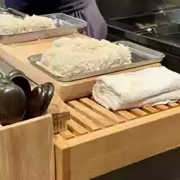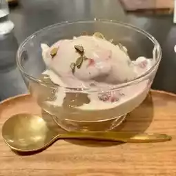 Homemade dessert. The warabi mochi is prepared right in front of you. The homemade ice cream is delicious.