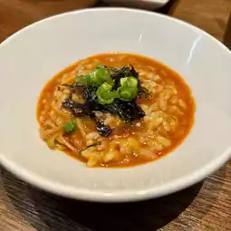 Large red shrimp, offal, and octopus seafood, with plenty of vegetables such as cabbage and bean sprouts. A spicy stir-fry pot with Korean-style glass noodles and kimchi. The rich soup with the shrimp miso melting in it was superb. We used the soup packed with umami to finish off the meal with risotto.