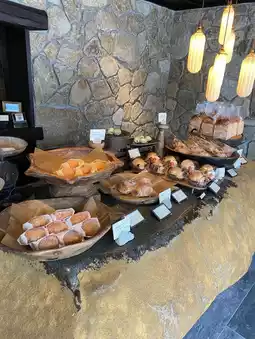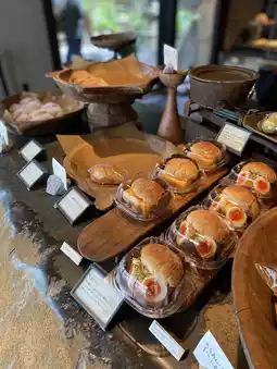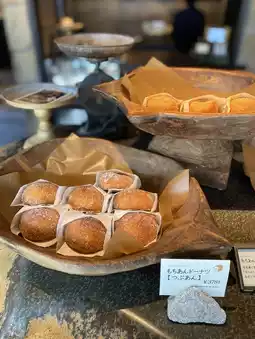 The Naniwa-an main store, famous for its grilled mitarashi dango, has a bakery area. There aren't many types of bread, but a carefully selected range is available, including the cafe's rolled omelet sandwich, mochi-an donuts, and loaf bread. It's a stylish bakery that makes you want to buy something on impulse.