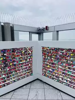 One of Umeda's landmarks, Umeda Sky Building, is a high-rise building built in 1993 that is made up of two 40-story buildings connected at the top. On the rooftop, there is the "Floating Garden Observatory" where you can get a panoramic view of Osaka's cityscape while being blown by the wind from 173 meters above ground. The see-through elevator going from the 35th floor to the 39th floor was very open! If you want to buy the popular heart lock, you must make a reservation in advance, so be careful!