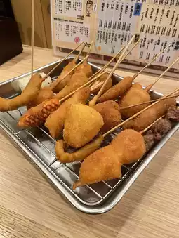When talking about kushikatsu in Osaka, Daruma is a must-visit. Look for the impressive sign. The kushikatsu is freshly fried, hot and crispy, and you can order just one. When in doubt, go for the set menu, and I recommend the wild shrimp.