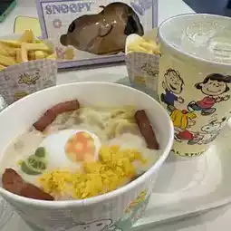Easter Carbonara Spaghetti Set¥1650Easter Carbonara SpaghettiPotato DrinkSnoopy container is too cute♡