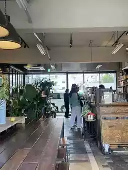 The vibe is very good. There are seats in the shop with green trees that are easy on the eyes. The loft-style bathroom is definitely a great picture.