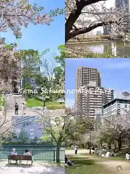 1. Kema Sakuranomiya Park A large public park filled with cherry trees along the river. We will see the atmosphere of Japanese people coming to picnic and socialize under the cherry trees. This is a public park with up to 4,000 cherry trees.