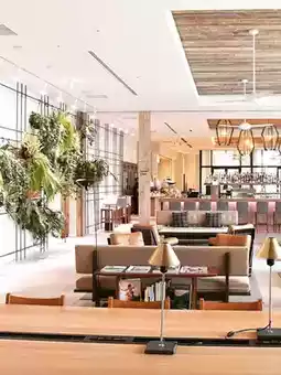 Speaking of the hotel, the woody fragrance that I like the most as soon as I enter the door is very high-end. The lobby has a check-in reception, a public reading area, a bar and a restaurant. The design is based on British-style plaid and green plants, extending this element from the lobby to the room and small gifts (the plaid toiletry bag is a gift and can be taken away~), including the hotel's elevator room, which is also decorated with plaid and is very photogenic📸~