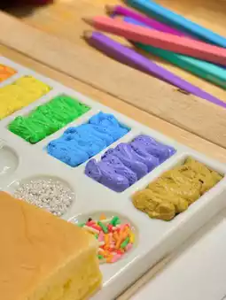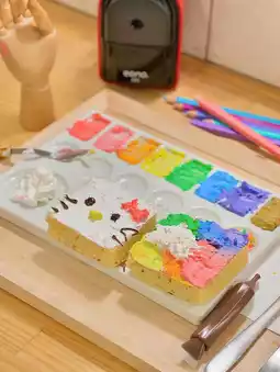 Doodle pancakes are simple pancakes with 9 colorful but not too sweet colored creams.
