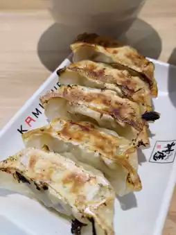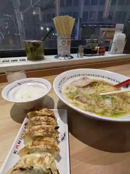 From the north exit of the Nankai Electric Railway, you can see Kamukura Ramen right at the Namba Nankai Street Entrance. There's an ordering machine outside the entrance with Japanese, Chinese, and English interfaces. I chose the gyoza set meal and was seated on the second floor. The restaurant mostly has bar-type seating, making it comfortable even for solo diners. When the ramen was served, you could see the clear soy sauce broth topped with cabbage and char siu. The salty and slightly sweet soy sauce, combined with the refreshing vegetable broth, was irresistible, and I found myself finishing the soup. Those who love char siu might be a bit disappointed because it's thinly sliced, but the overall portion of the set meal is quite generous. The gyoza served hot, with a bit of vinegar and chili oil added, made for a heartwarming meal on this cool, rainy night.