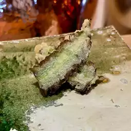 It has a rich flavor with a subtle sweetness, and you can enjoy the addictive texture of the crispy batter and the creamy texture of the mizunasu.