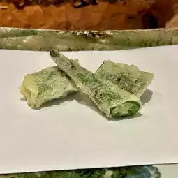 You can enjoy the juicy texture, flavor, and aroma of asparagus. Of course, you can enjoy the ingredients by dipping them in seaweed salt, but it was also delicious dipped in tempura sauce.