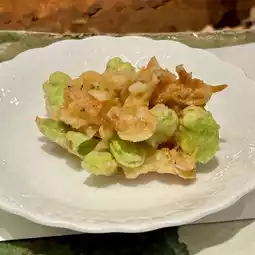 The plump, steamed beans and the popping cherry shrimp in the kakiage allow you to enjoy the different textures of the ingredients.