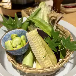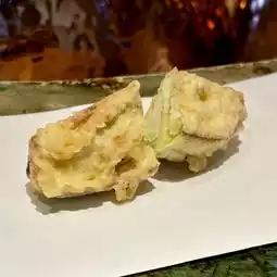 The sweetness of the white corn in tempura is concentrated and it is juicy. You can fully enjoy the sweetness of the ingredients.