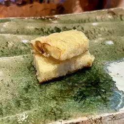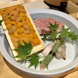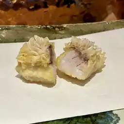 Chateaubriand tempura topped with raw Hokkaido sea urchin. The buttery, melt-in-your-mouth fat spreads softly in your mouth. The sweetness and creaminess of the sea urchin and the aroma of the seashore add an accent.