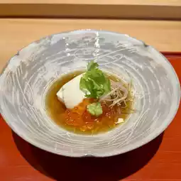 A specialty of the restaurant. It has a rich taste, and you can enjoy the sweetness and flavor of soybeans. It is served with salmon roe, myoga, mitsuba, and wasabi.