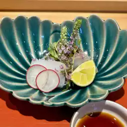 It has a fine texture, a bouncy texture, and a rich taste. It is refreshing with seaweed salt and lemon.